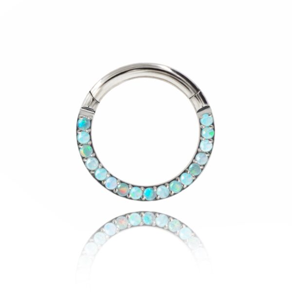 Kółko typu clicker wykonane z tytanu wysokopolerowanego ASTM F-136 z białymi opalitami.