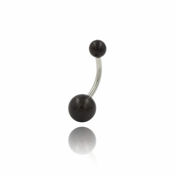 Kolczyk do pępka wykonany ze stali chirurgicznej 316L z kulkami z drzewa hebanowego.