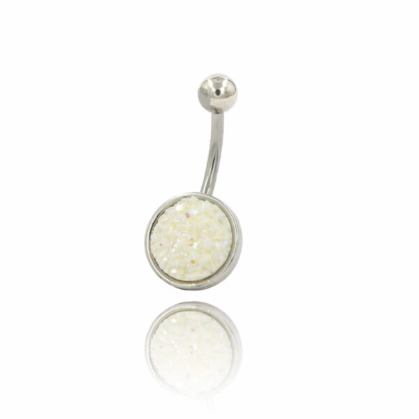 Kolczyk do pępka wykonany ze stali chirurgicznej 316L z ozdobą – kamyczki druzy biały.