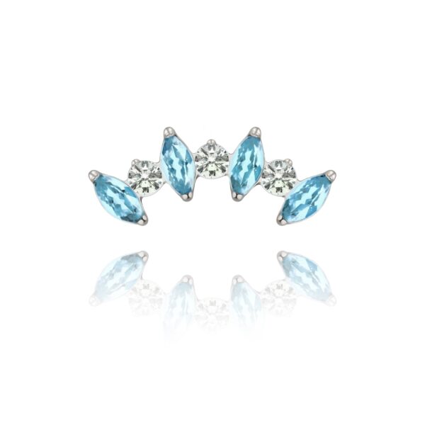 Nakrętka wykonana z tytanu ASTM F-136 , ręcznie polerowana. Ozdoba składa się z siedmiu kryształków w kolorze błękitnym i białym.
