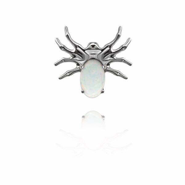 Nakrętka wykonana z tytanu ASTM F-136 , ręcznie polerowana. Ozdoba w kształcie pająka z białym opalitem.