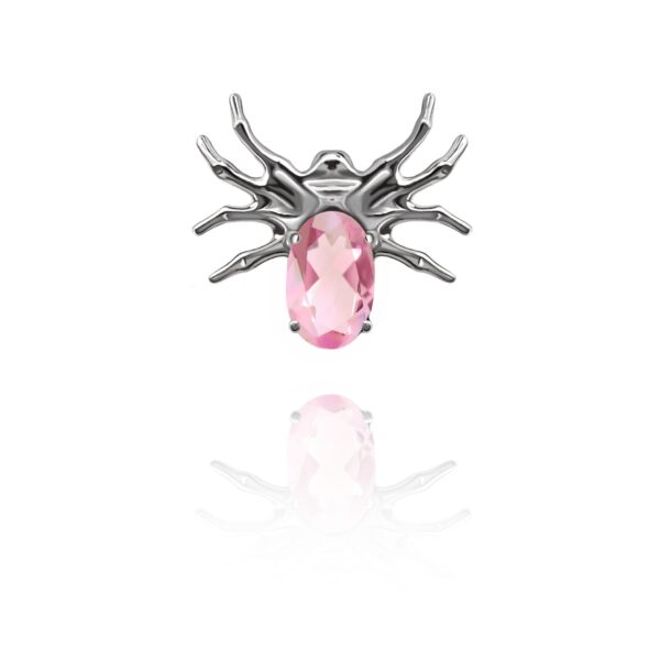Nakrętka wykonana z tytanu ASTM F-136 , ręcznie polerowana. Ozdoba w kształcie pająka z różowym kryształkiem.