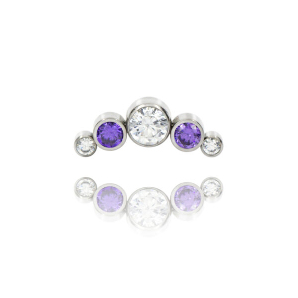Nakrętka składa się z pięciu kryształków : środkowy 4 mm bezbarwny , dwa średnie 3 mm w kolorze fioletowym oraz dwa 2 mm bezbarwne.