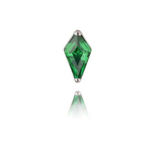Nakrętka wykonana z tytanu ASTM F-136 , ręcznie polerowana. Ozdoba składa się z jednego kryształka w kolorze zielonym.