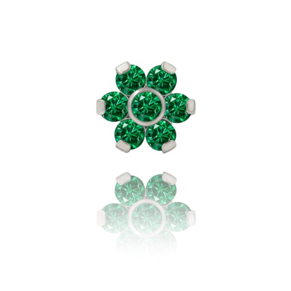 Kwiatek składa się z 7 kryształków w zielonym kolorze osadzonych w tytanie.