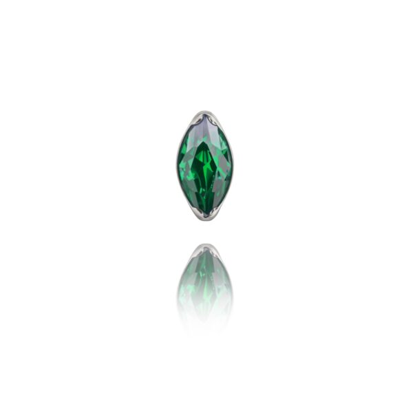 Nakrętka wykonana z tytanu ASTM F-136 , ręcznie polerowana. Ozdoba składa się z jednego kryształka w kolorze szmaragdowym.