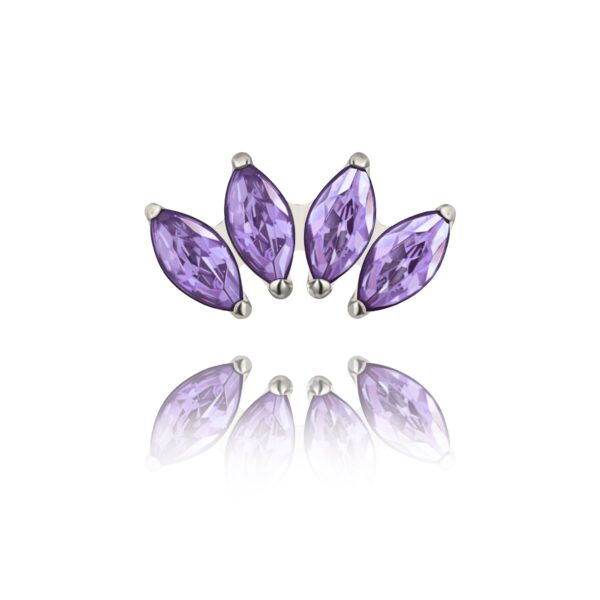 Nakrętka wykonana z tytanu ASTM F-136 , ręcznie polerowana. Ozdoba składa się z czterech kryształków w kolorze fioletowym.