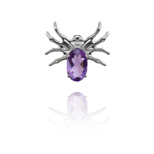 Nakrętka wykonana z tytanu ASTM F-136 , ręcznie polerowana. Ozdoba w kształcie pająka z fioletowym kryształkiem.