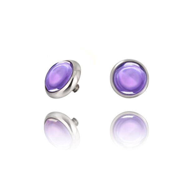 Nakrętka wykonana z tytanu ASTM F-136 , ręcznie polerowana. Ozdoba składa się z osadzonego kamienia Ametyst o średnicy 3 mm i 4 mm.