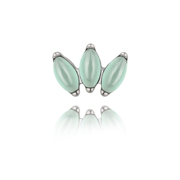 Nakrętka wykonana z tytanu ASTM F-136 , ręcznie polerowana. Ozdoba składa się z trzech kamieni – Awenturyn.
