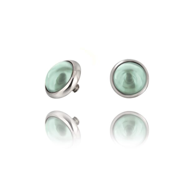 Nakrętka wykonana z tytanu ASTM F-136 , ręcznie polerowana. Ozdoba składa się z osadzonego kamienia Awenturyn o średnicy 3 mm i 4 mm.