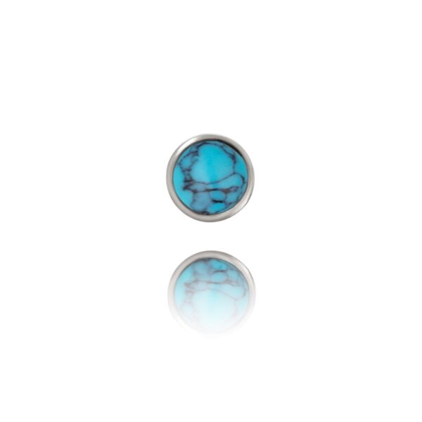 Nakrętka wykonana z tytanu ASTM F-136 , ręcznie polerowana. Ozdoba składa się z osadzonego kamienia Turkus o średnicy 3 mm i 4 mm.