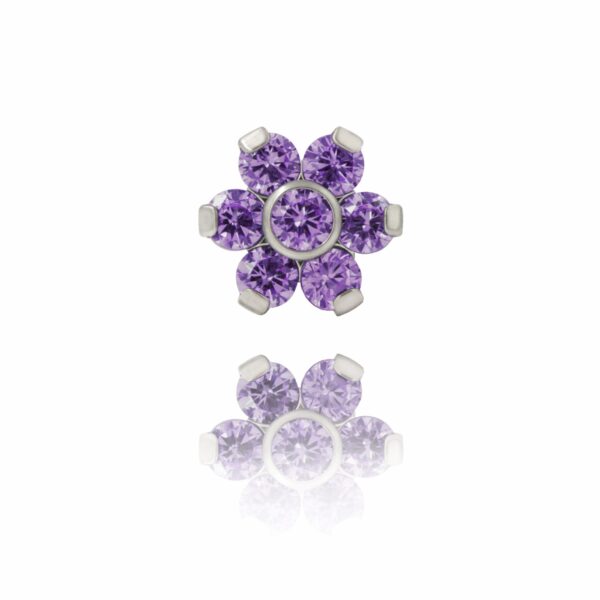 Kwiatek składa się z 7 kryształków w kolorze fioletowym osadzonych w tytanie.