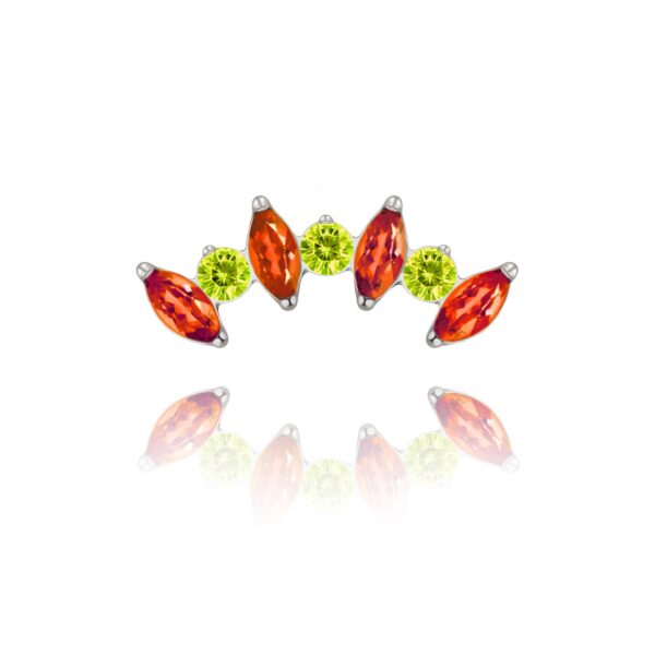 Nakrętka wykonana z tytanu ASTM F-136 , ręcznie polerowana. Ozdoba składa się z siedmiu kryształków w kolorze czerwonym i jaskrawozielonym.