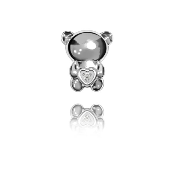 Nakrętka tytanowa w kształcie misia z bezbarwnym kryształkiem , wykonana z tytanu wysokopolerowanego ASTM F136.