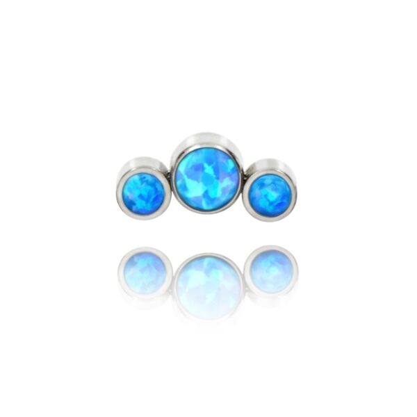 Nakrętka składa się z trzech niebieskich opalitów : środkowy 4 mm oraz dwóch po bokach o średnicy 3 mm.