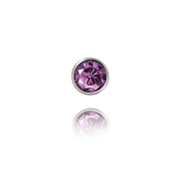 Nakrętka wykonana z tytanu ASTM F-136 , ręcznie polerowana. Ozdoba składa się z jednego kryształka w kolorze fioletowym.