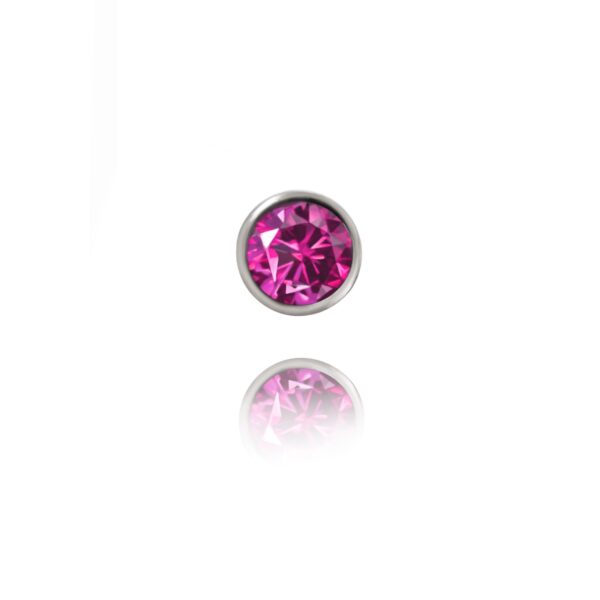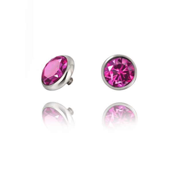Nakrętka wykonana z tytanu ASTM F-136 , ręcznie polerowana. Ozdoba składa się z jednego kryształka w kolorze fuksji.