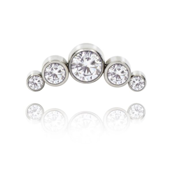Nakrętka składa się z pięciu bezbarwnych kryształków : środkowy 4 mm , dwa średnie 3 mm oraz dwa 2 mm .