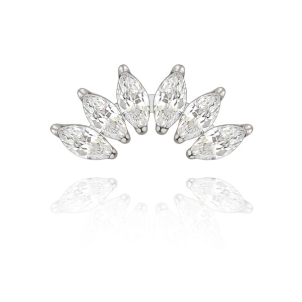 Nakrętka wykonana z tytanu ASTM F-136 , ręcznie polerowana. Ozdoba składa się z sześciu bezbarwnych kryształków.