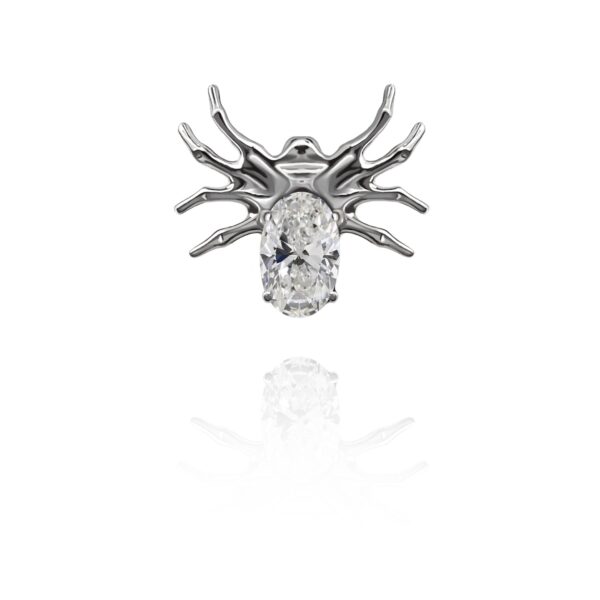 Nakrętka wykonana z tytanu ASTM F-136 , ręcznie polerowana. Ozdoba w kształcie pająka z bezbarwnym kryształkiem.