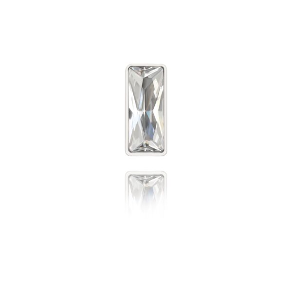 Nakrętka wykonana z tytanu ASTM F-136 , ręcznie polerowana. Ozdoba w kształcie prostokąta z osadzonym bezbarwnym kryształkiem .