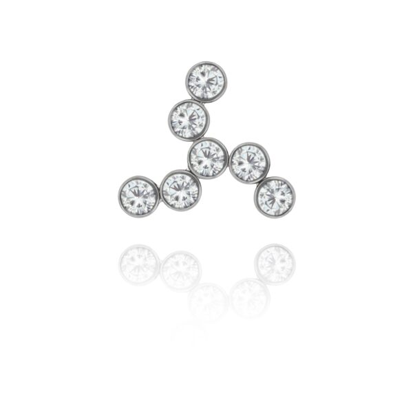 Nakrętka wykonana z tytanu ASTM F-136 , ręcznie polerowana. Ozdoba składa się z siedmiu bezbarwnych kryształków tworzących wiatrak.