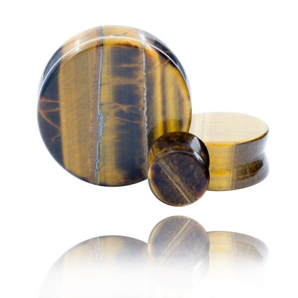 Plug siodełkowy wykonany z kamienia – Tygrysie Oko.