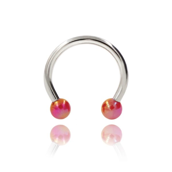 Podkowa wykonana ze stali chirurgicznej 316L z akrylowymi kulkami z mieniącym , połyskującym efektem – kolor czerwony.