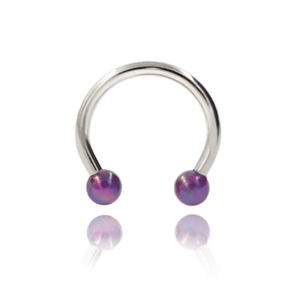 Podkowa wykonana ze stali chirurgicznej 316L z akrylowymi kulkami z mieniącym , połyskującym efektem – kolor fioletowy.