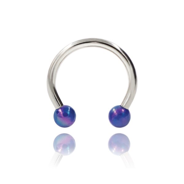 Podkowa wykonana ze stali chirurgicznej 316L z akrylowymi kulkami z mieniącym , połyskującym efektem – kolor niebieski.