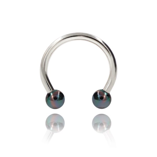 Podkowa wykonana ze stali chirurgicznej 316L z akrylowymi kulkami z mieniącym , połyskującym efektem – kolor tęczowy.