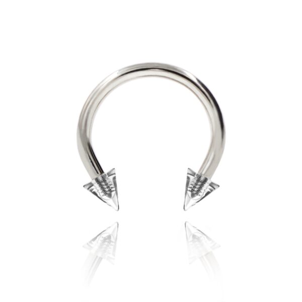 Podkowa wykonana ze stali chirurgicznej 316L ze stożkami akrylowymi przeźroczystymi.