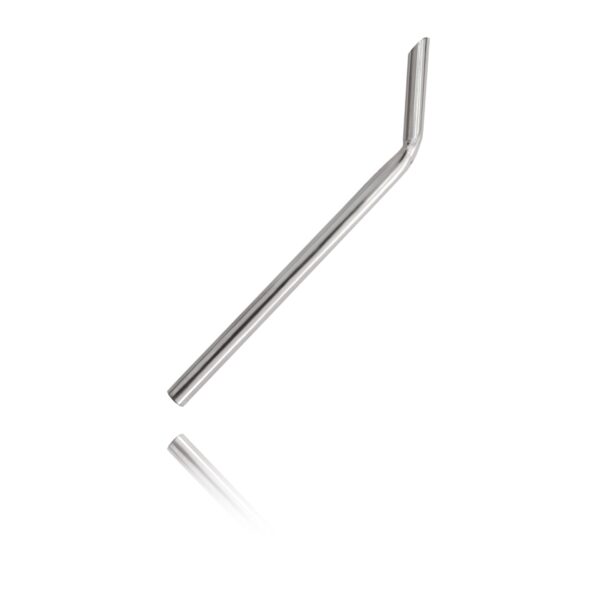 Rurka odbierająca wykonana ze stali chirurgicznej z jednej strony zakrzywiona Ułatwia przekłuwanie np. płatka nosa oraz trudnodostępnych miejsc.