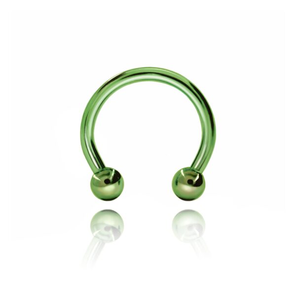Podkowa wykonana ze stali chirurgicznej 316L w kolorze zielonym.