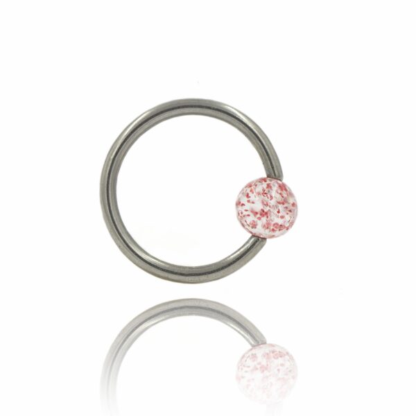 Kółko zamknięte wykonane ze stali chirurgicznej 316L z brokatową kulką akrylową w kolorze jasnoczerwonym.