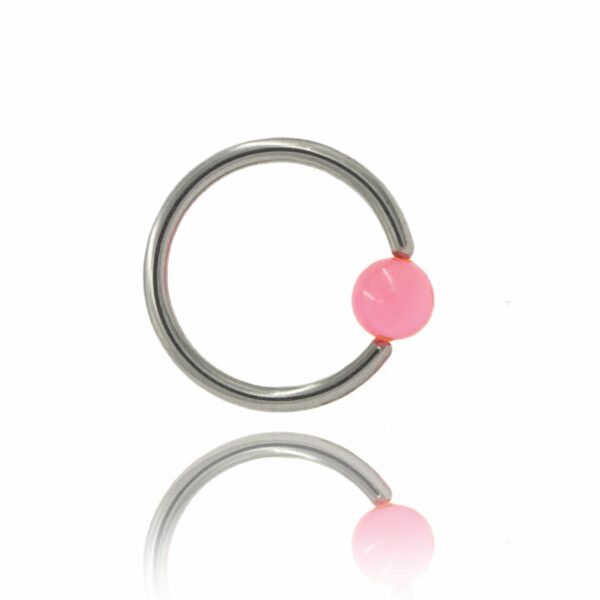Kółko zamknięte wykonane ze stali chirurgicznej 316L z akrylową kulką w kolorze różowym.