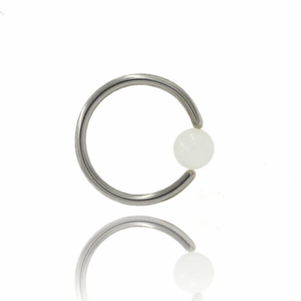 Kółko zamknięte wykonane ze stali chirurgicznej 316L z akrylową bezbarwną kulką świecącą w ciemności.