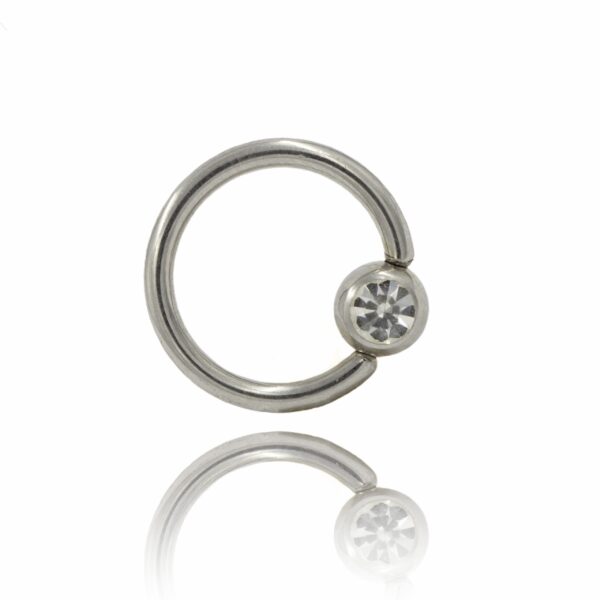 Kółko zamknięte wykonane ze stali chirurgicznej 316L z kulką z bezbarwnym kryształkiem.
