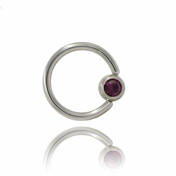 Kółko zamknięte wykonane ze stali chirurgicznej 316L z kulką z fioletowym kryształkiem.