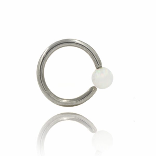 Kółko zamknięte wykonane ze stali chirurgicznej 316L z opalitem w białym kolorze.