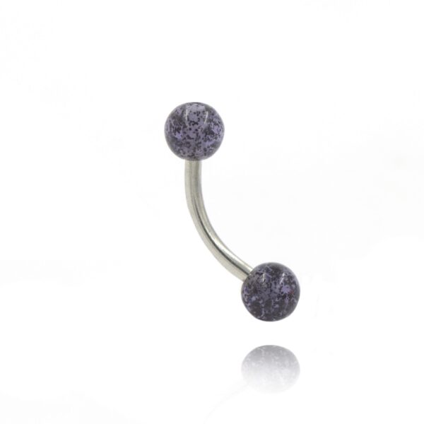 Banan wykonany ze stali chirurgicznej 316L z brokatowymi kulkami akrylowymi w kolorze czarnym i fioletowym.