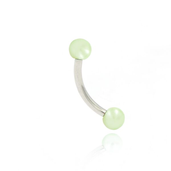 Banan wykonany ze stali chirurgicznej 316L z kulkami z akrylu imitującym perłę w kolorze pistacjowym.