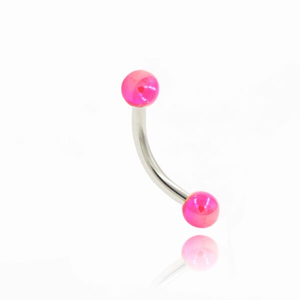 Banan wykonany ze stali chirurgicznej 316L z akrylowymi kulkami , połyskującymi – AURORA BOREALIS w kolorze różowym.