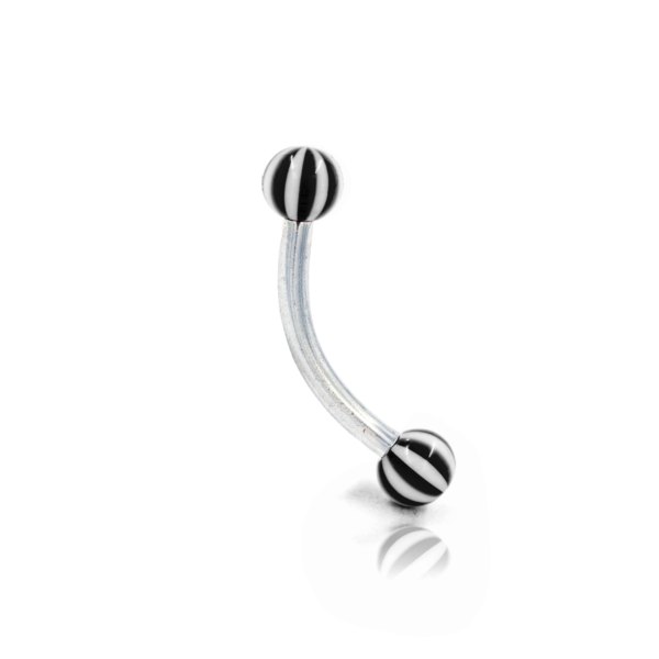 Banan wykonany ze stali chirurgicznej 316L z kulkami akrylowymi w czarno-białe paski.