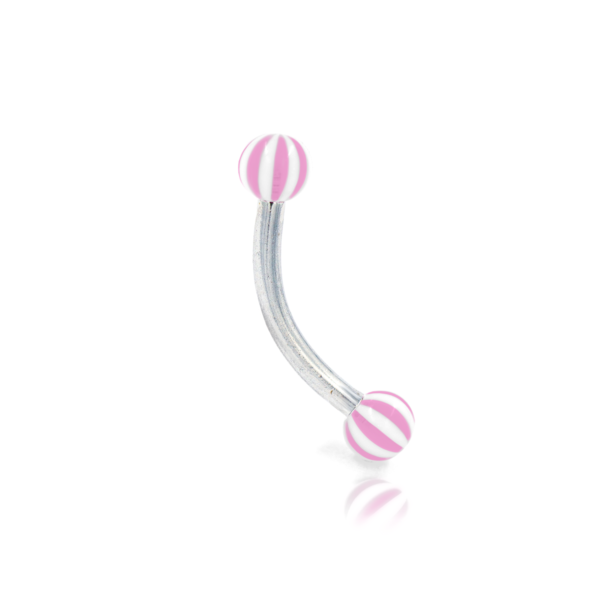 Banan wykonany ze stali chirurgicznej 316L z kulkami akrylowymi w różowo-białe paski.