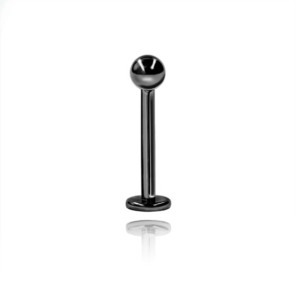 Labret wykonanym ze stali chirurgicznej 316L z kulką w kolorze czarnym.