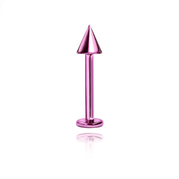 Labret wykonany ze stali chirurgicznej 316L w kolorze fioletowym ze stożkiem.