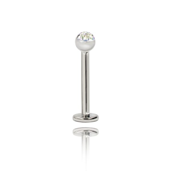 Labret wykonany ze stali chirurgicznej 316L z oczkiem, kryształkami Ferido w kolorze białym.