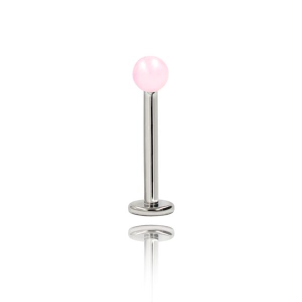 Labret wykonany ze stali chirurgicznej 316L z akrylową kulką – imitacja perły w kolorze jasnoróżowym.